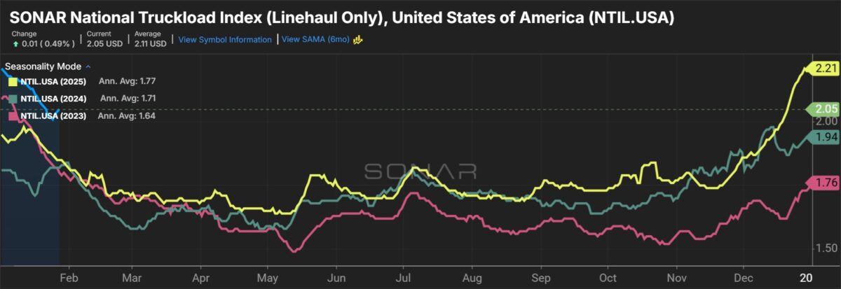 Total truck revenue per load increased 6% from October to December, due to a reduction in truck capacity, Landstar said. The metric increased 1.5% sequentially in the fourth quarter, which was 50 basis points ahead of normal seasonality.